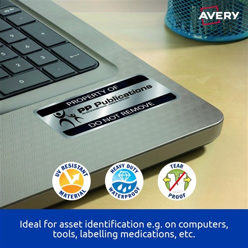 Avery Heavy Duty Laser Labels Asset Tags Silver L6008 25.4x10 mm 189UP 3780 Labels