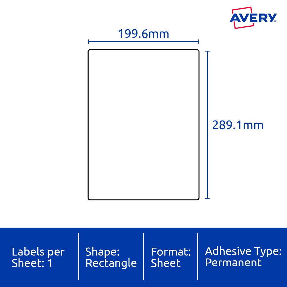 Avery Identification Laser Heavy Duty White L7067 199.6 x 289.1mm 1UP 25 Labels