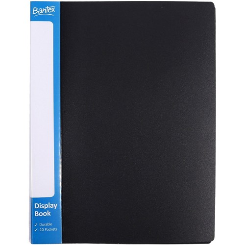 Bantex Insert Spine Display Book A4 20 Fixed Pockets Black