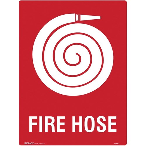 Brady Fire Sign Fire Hose 450W x 600mmH Polypropylene White/Red