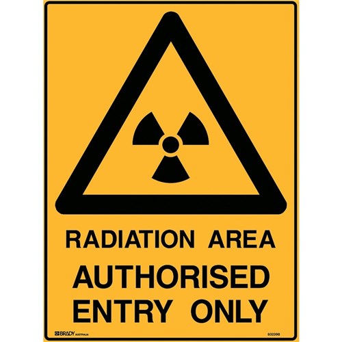 Brady Warning Safety Sign Radiation Hazard Auth Entry 450Wx600mmH Metal Yellow/Black