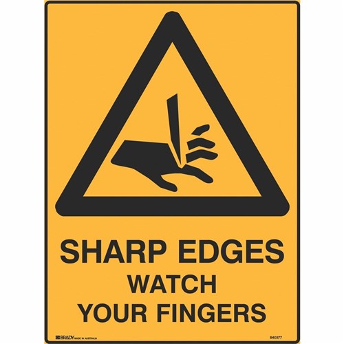 Brady Warning Safety Sign Sharp Edges Watch Your Fingers 450Wx600mmH Metal Yellow/Black