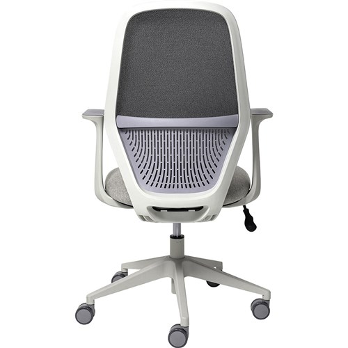 • Composition: Breathable mesh back and fabric upholstered seat.
