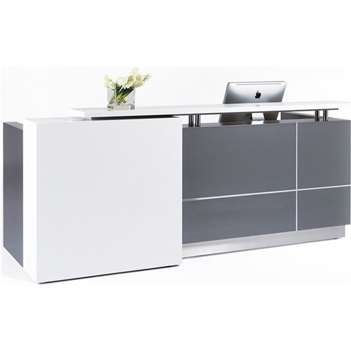 Calvin Reception Counter 2500W x 950D x 1150mmH Metallic Grey And Matte White