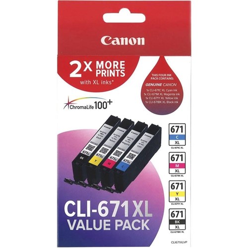Canon Pixma CLI671XL Ink Cartridge High Yield Value Pack CMYK