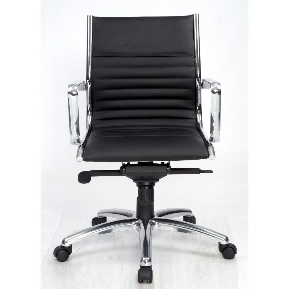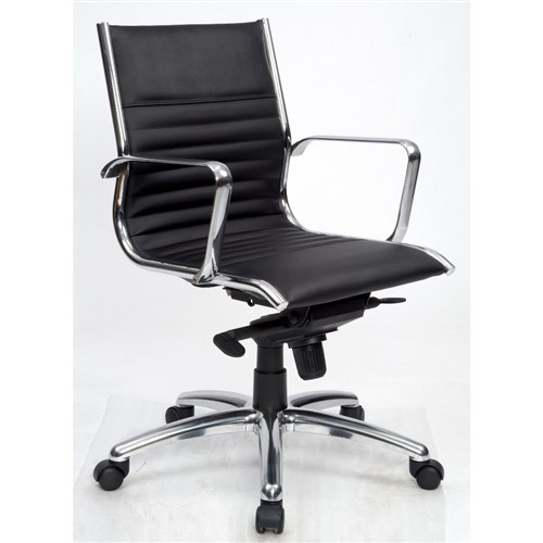 Cogra Executive Medium Back Meeting Chair Chrome Frame And Arms Black Leather