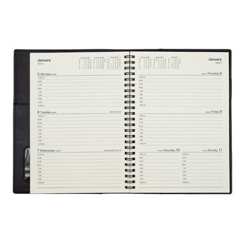 • Ideal for those 'on the move' with its double wiro binding and heavily grained metallic and matt PU cover.