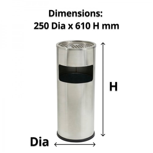Compass Cylindrical Lobby Bin With Ashtray 10 Litres Stainless Steel