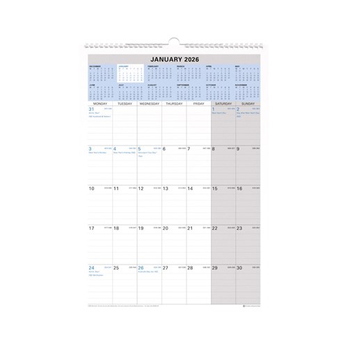 Debden Calendar Wall Planner 305 x 432mm Month To View Wiro Top