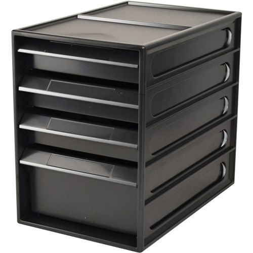 Italplast 4 Drawer Office Organiser Cabinet 255L x 165W x 230mmH Recycled Black