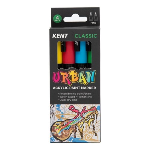 Kent Urban Paint Markers Fine 3mm Dual Nib Classic Assorted Pack Of 4