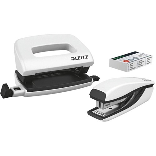 Leitz Nexxt Wow Stapler And 2 Hole Punch Set 10 Sheet Capacity White