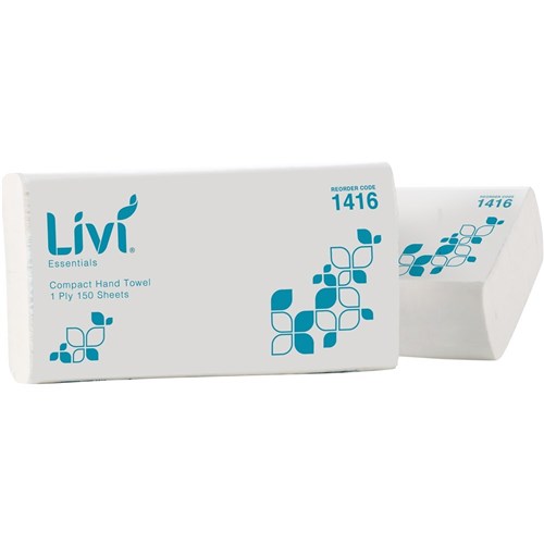Livi Essentials Hand Towel Compact 1 Ply 150 Sheet Box Of 16
