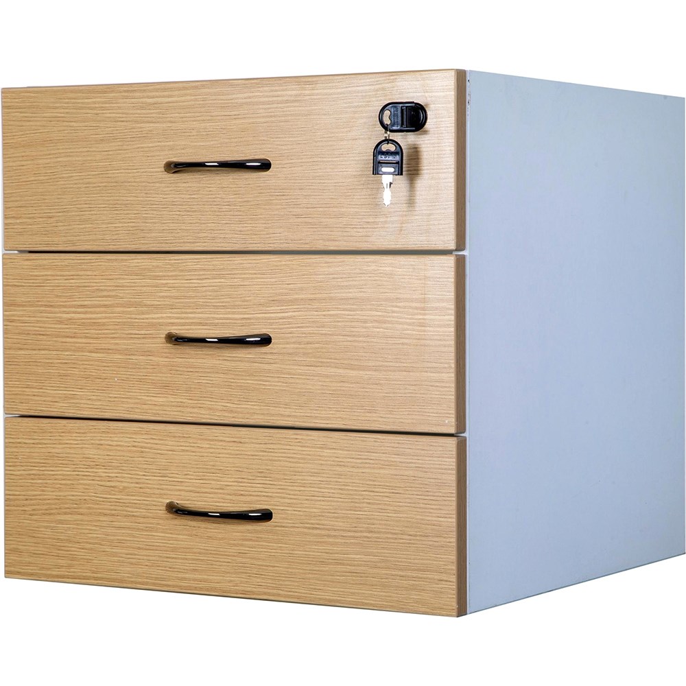 Logan Fixed Pedestal 3 Drawer 476 x 470D x 450mmH White And Oak