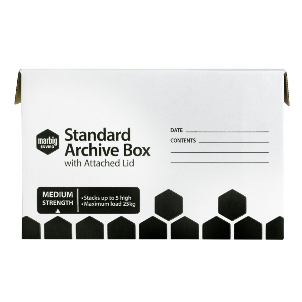 Marbig Enviro Standard Archive Box Hinged Lid 315W x 420D x 260mmH White