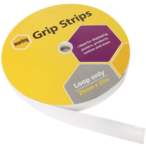Marbig Grip Strip Fastener Loop Only 25mm x 25m Roll White