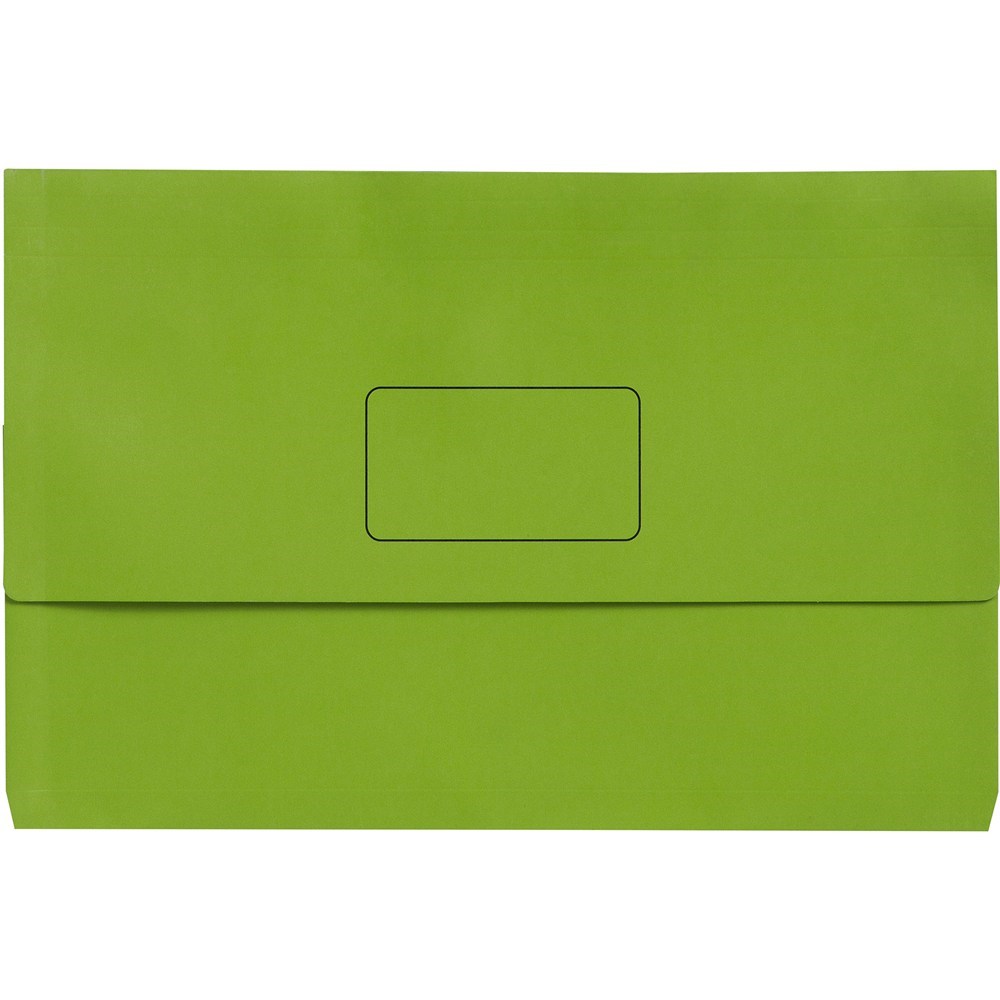 Marbig Slimpick Manilla Document Wallet Foolscap 30mm Gusset Green Pack Of 10