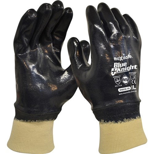 Maxisafe Blue Knight Nitrile Fully Dipped Gloves With Knit Wrist Medium Black