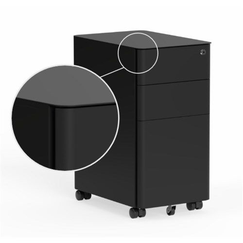 OLG Tempo Mobile Pedestal 2 Drawer 1 File Narrow + Rounded Corners 300Wx450Dx592mmH Black