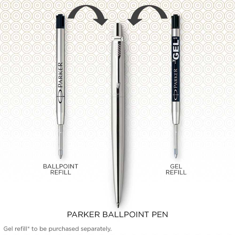 • Fitted with Quinkflow ballpoint refill for optimal ink flow and a smooth writing experience. Blue ink, medium tip. Also accepts Parker gel refills.