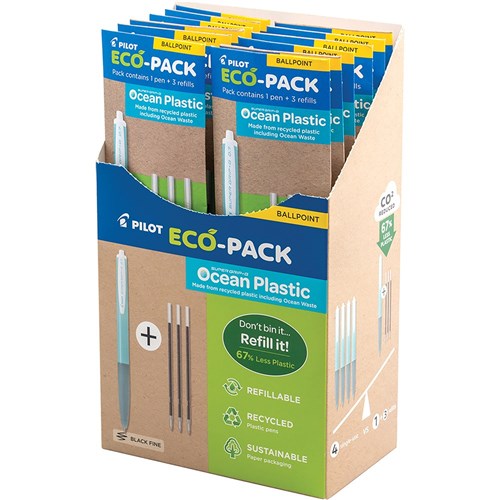 Pilot Eco Pack Super Grip G Retractable Ballpoint Ocean Plastic Pen+Refill 0.7mm Black