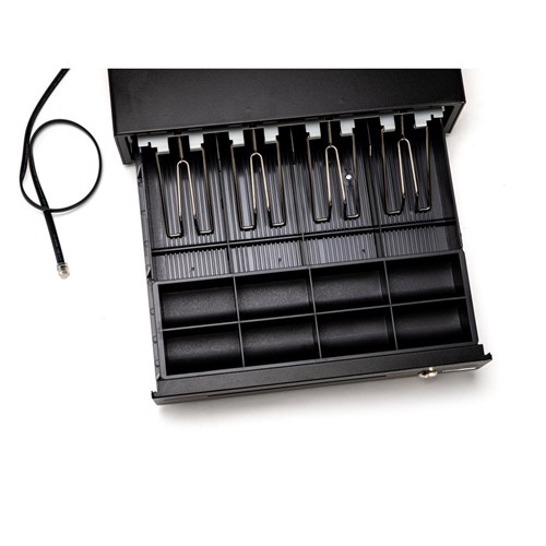 • There are 4 note holders, 8 coin trays and a cheque slot for organising currency.