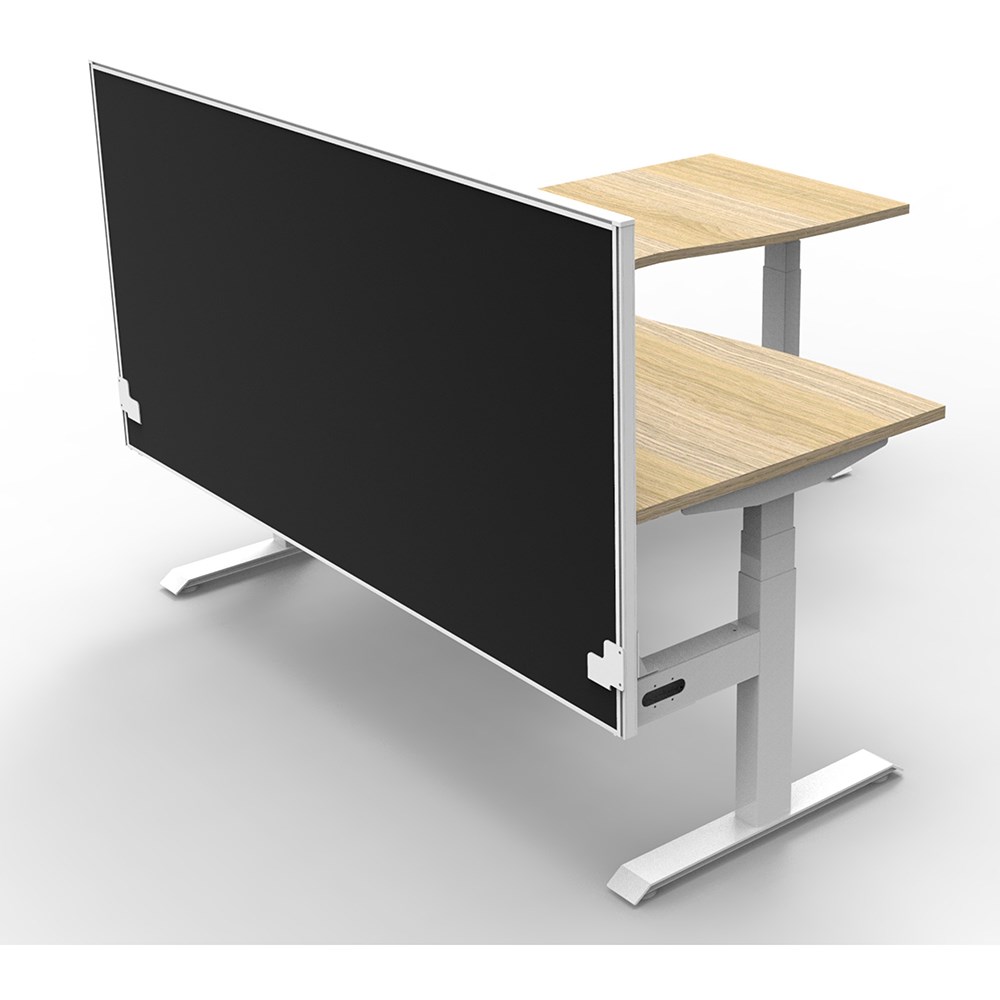 • Includes pinnable privacy screen in black fabric with matching white powder coated frame. 900mm H x 30mm T.