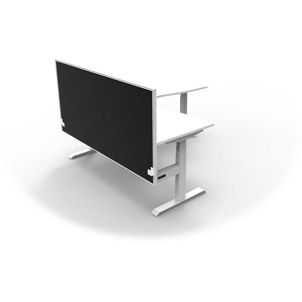 • Includes pinnable privacy screen in black fabric with matching white powder coated frame. 900mm H x 30mm T.