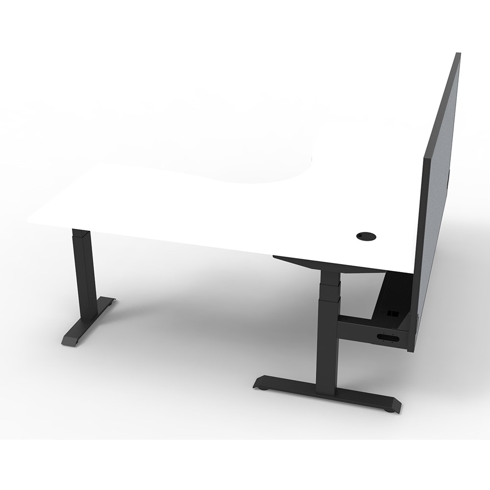 • Dual Motor 3 stage motorised legs. Corner Workstation with Cable Tray and Screen.