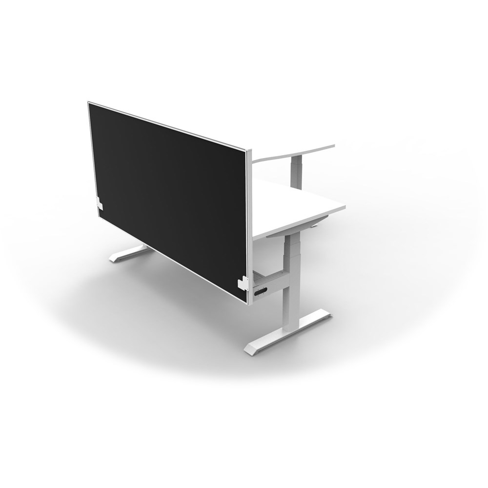 • Includes pinnable privacy screen in black fabric with matching white powder coated frame. 900mm H x 30mm T.