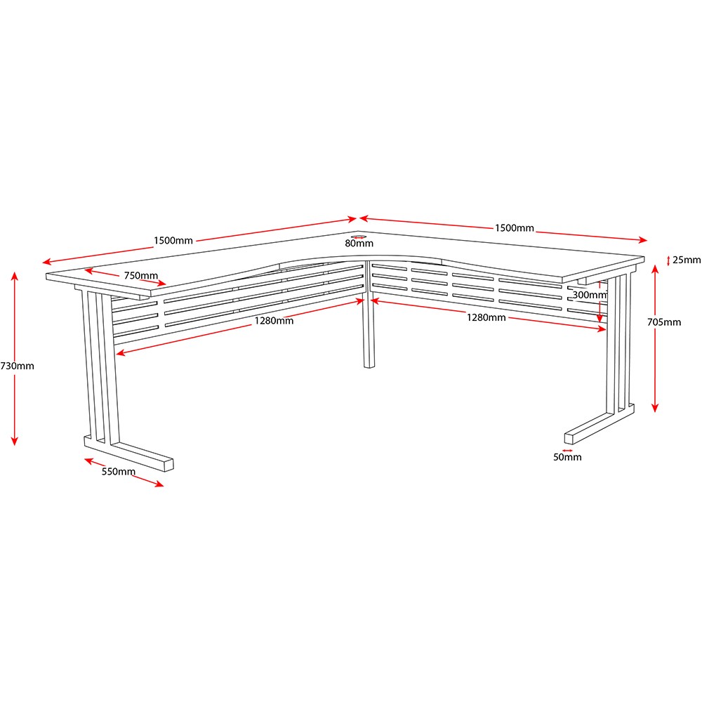 Rapidline C Leg Corner Workstation 1500/1500W x 750D x 730mmH Natural Oak/Silver