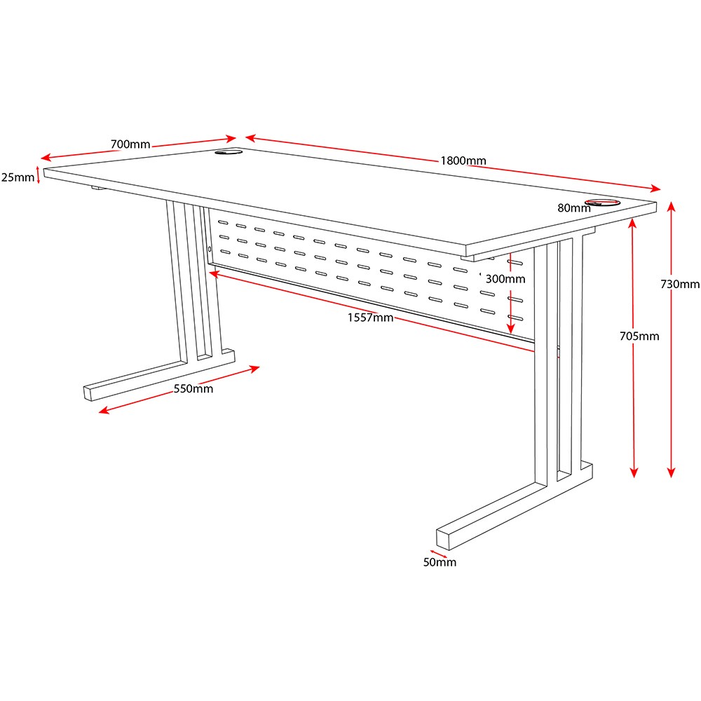 • 2 x 80mm diameter cable hole.