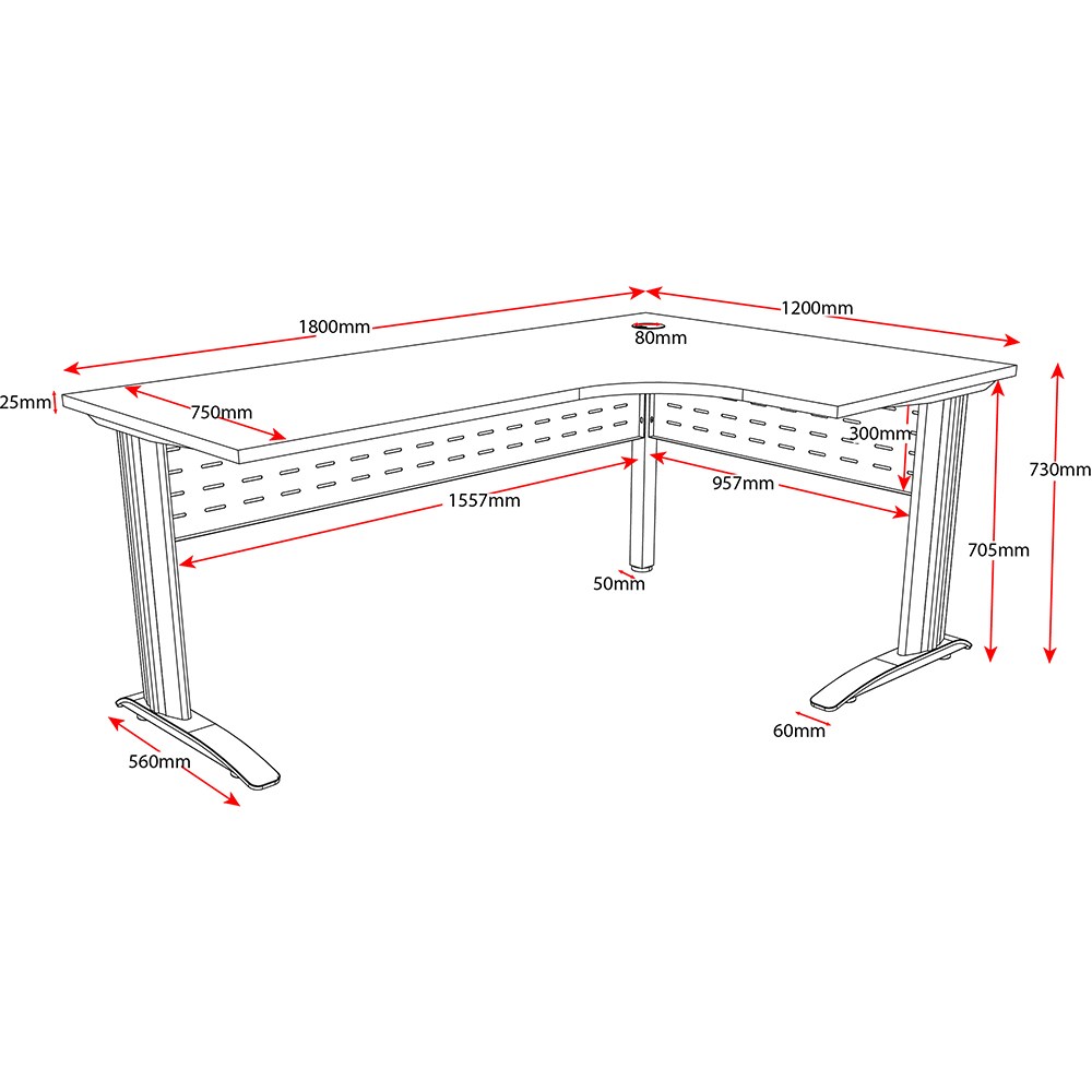 • 750mm deep top for more workspace.