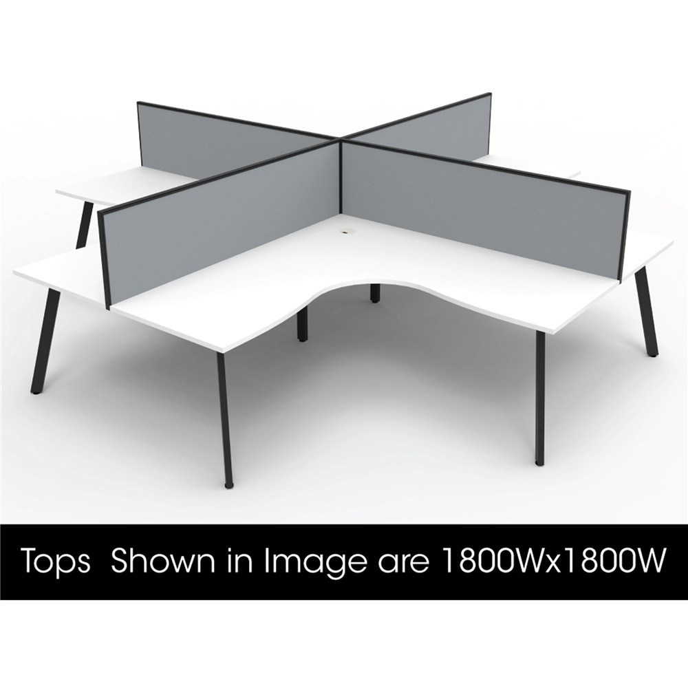 Rapidline Eternity Corner POD Workstation 4 Person + Screens 3600Wx3000Dx1200mmH White/Blk