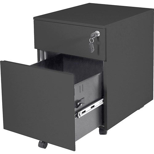 Rapidline Go Steel Mobile Pedestal 1 Drawer 1 File 390W x 472D x 527mmH Black
