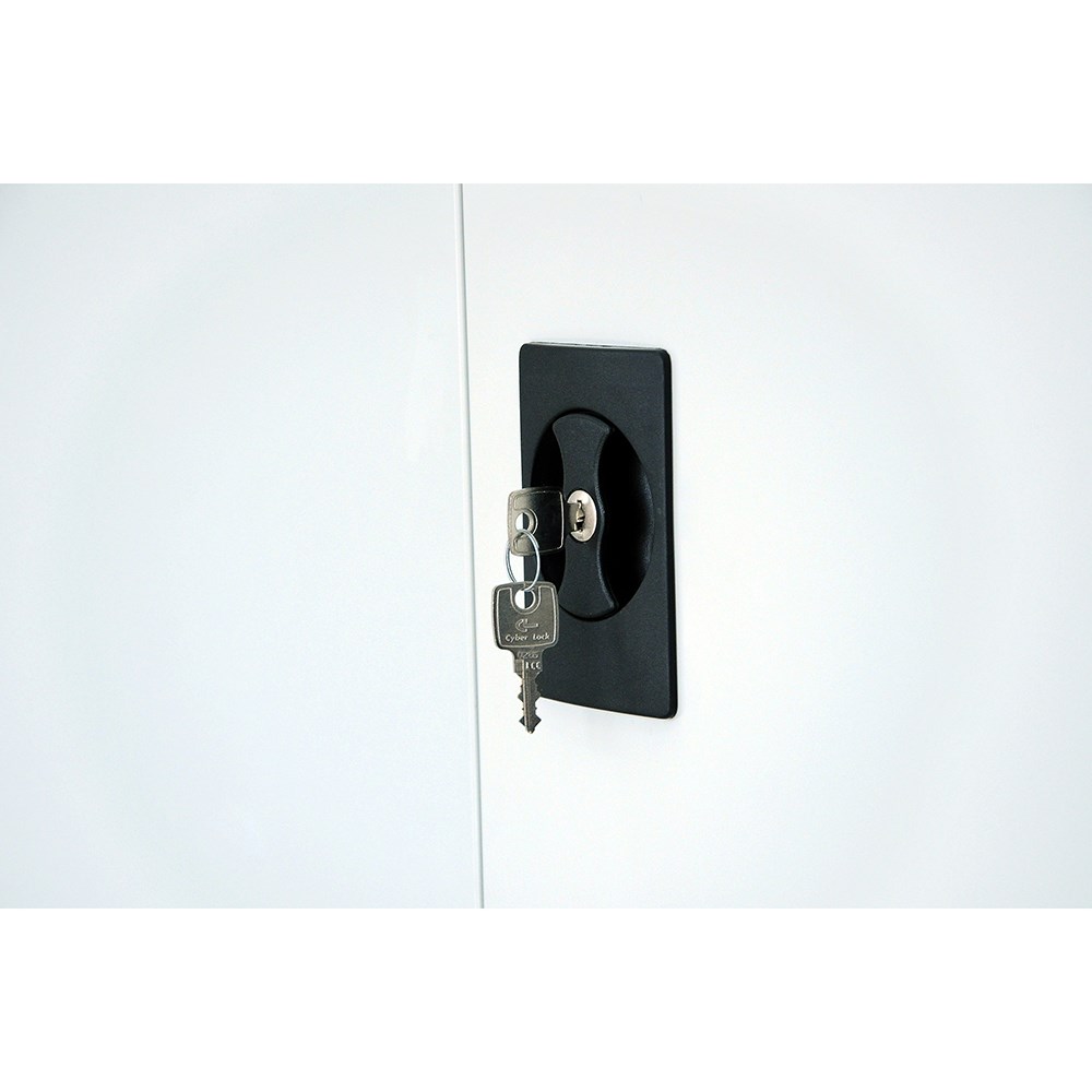 • GO swing door cupboards have a flush lock and two adjustable shelves.