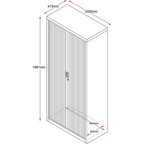 • Rapidline Go Tambour Door Cupboard No Shelves Included 1200W x 473D x 1981mmH Black