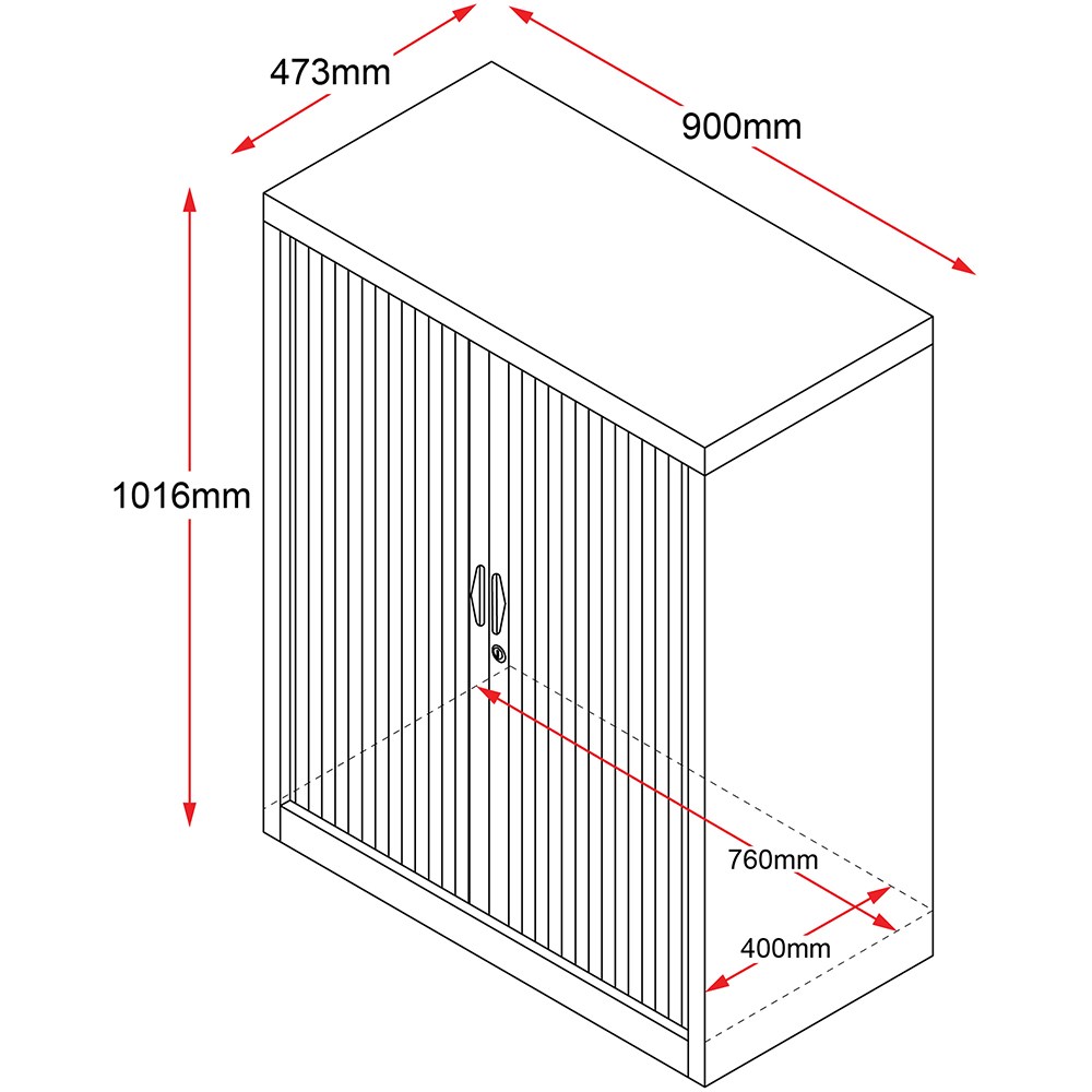 • Rapidline Go Tambour Door Cupboard No Shelves Included 900W x 473D x 1016mmH Black