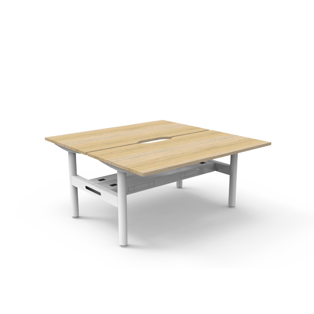 • Natural Oak top White Satin frame. Double sided workstation with cable tray.