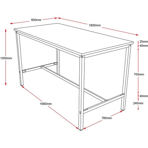 Rapidline High Bar Table 1800W x 900D x 1050mmH Beech Top Black Frame