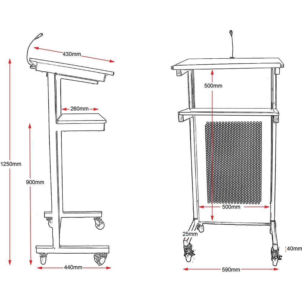 Rapidline Lectern Fixed Shelves 445W x 450D x 1200mmH Black