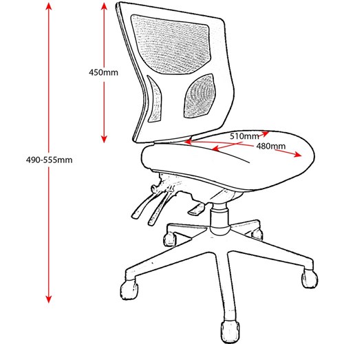 • Chair Dimensions: Seat 510W x 480D x Back 450H x Seat 490-555mmH.