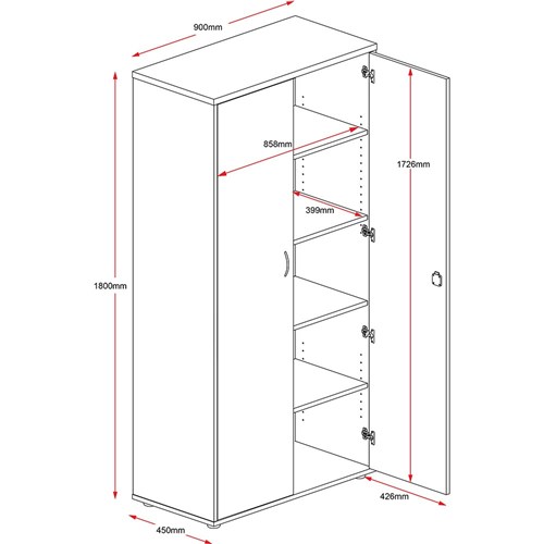 • The cupboard is fully lockable with 3 adjustable shelves and 1 fixed shelf.