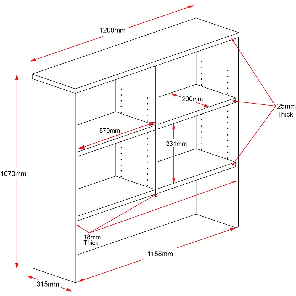• The hutch comes with adjustable shelves and a space for a monitor under the shelves to maximise desk space, and clear clutter from the desk top.