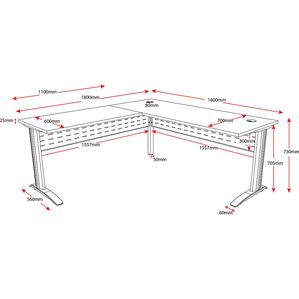 Rapidline Span Desk And Return 1800/1100W x 700/600D x 730mmH Beech/Silver