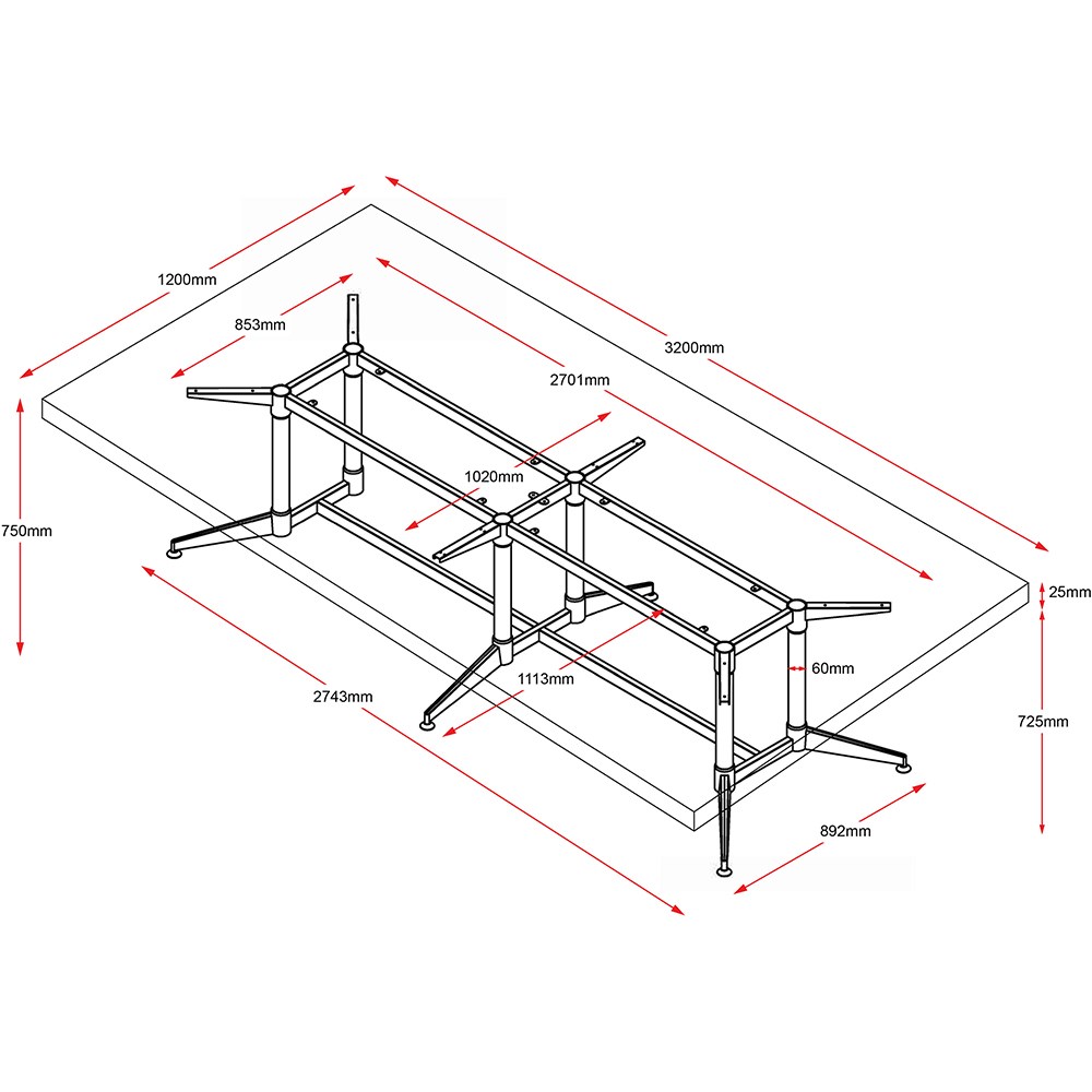 • Black powder coated frame and rails and polished aluminium feet with adjustable feet.