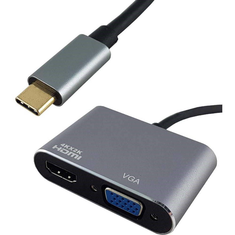 Shintaro USB-C TO 4K HDMI & 1080P VGA HUB Silver