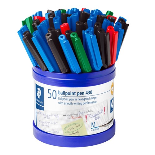 Staedtler 430 Stick Ballpoint Pens Medium 1mm Assorted Cup of 50