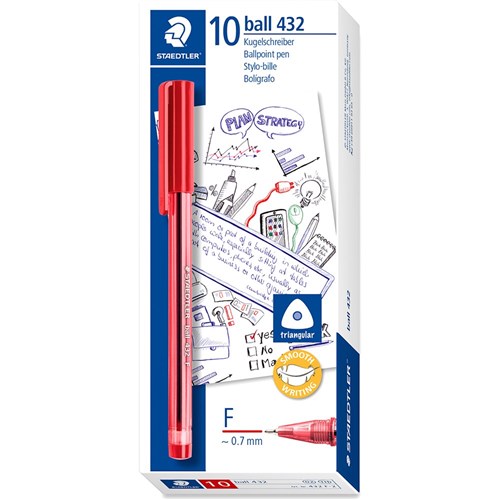 Staedtler 432 Stick Triangular Ballpoint Pen Fine 0.7mm Red Box of 10