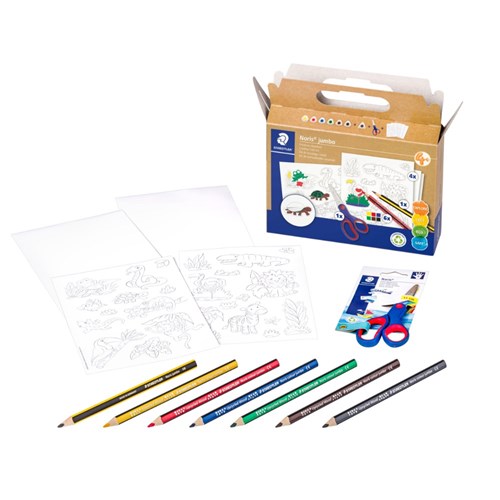 • 61 C3 contains: 4 x sticker sheets with wildlife figures, 6 x Noris jumbo colouring pencils, 1 x Noris graphite pencil, 1 x Noris crafting scissors.